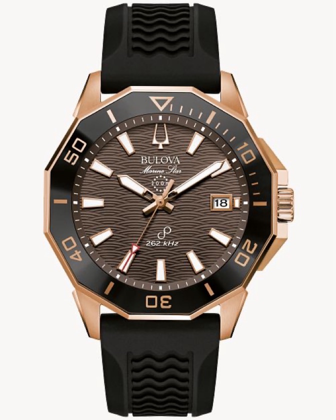 Su robusta caja de 43 mm de acero inoxidable en tono oro rosa alberga una esfera marrón con marcadores luminosos y detalles en el mismo tono. El cristal de zafiro antirreflectante garantiza una visión perfecta y la máxima resistencia. Diseñado para el alto rendimiento, cuenta con una impresionante resistencia al agua de 200 M y se sujeta con una cómoda correa de silicona. La combinación perfecta de lujo, durabilidad y la precisión más avanzada.