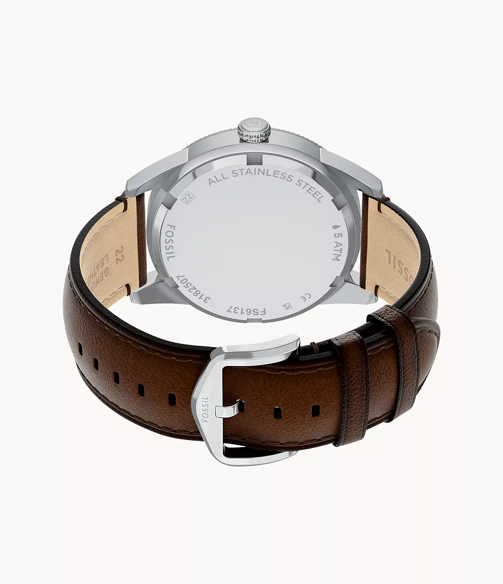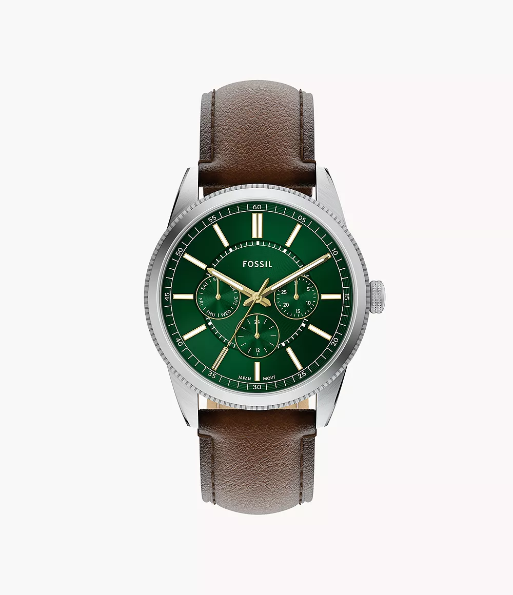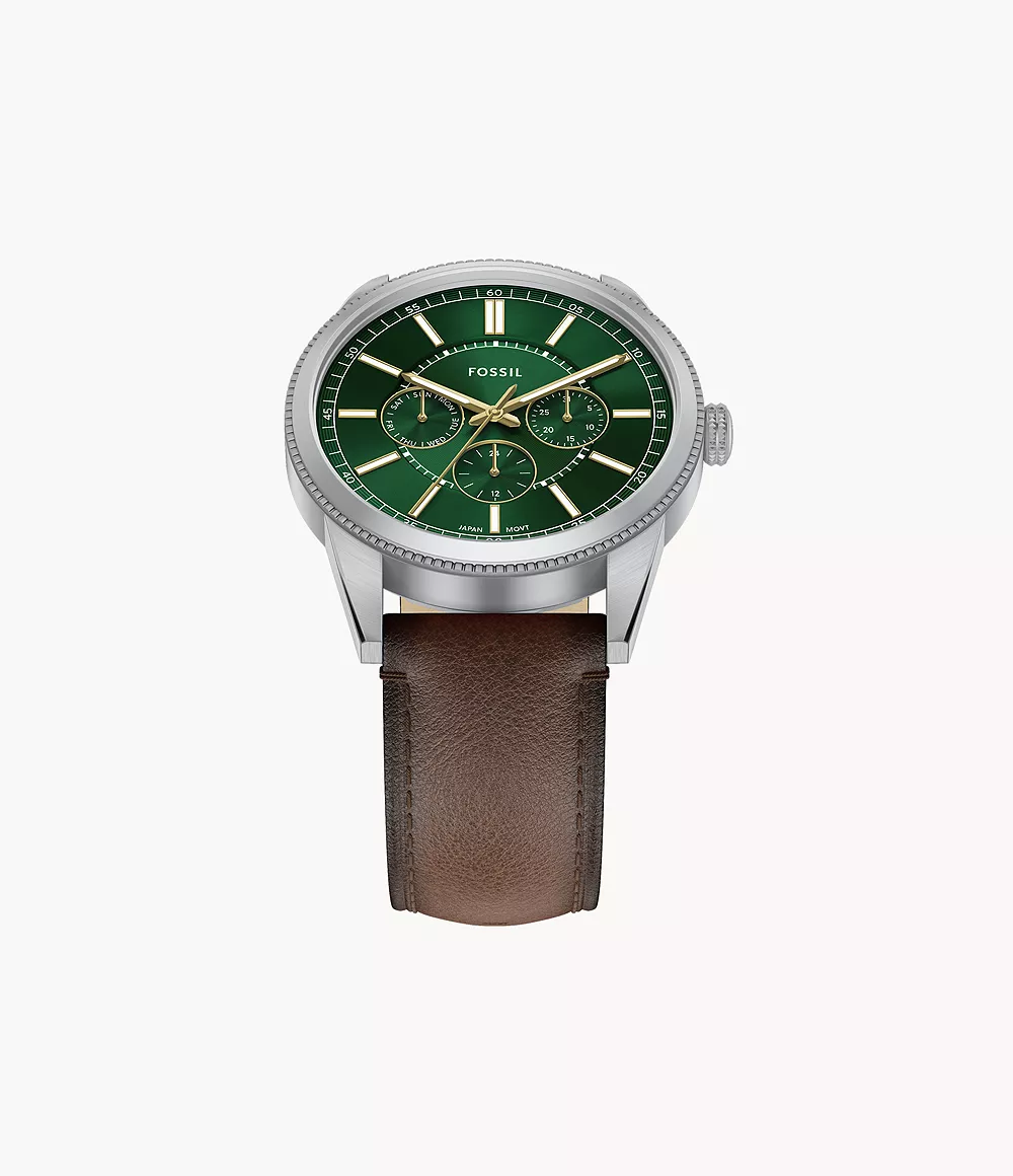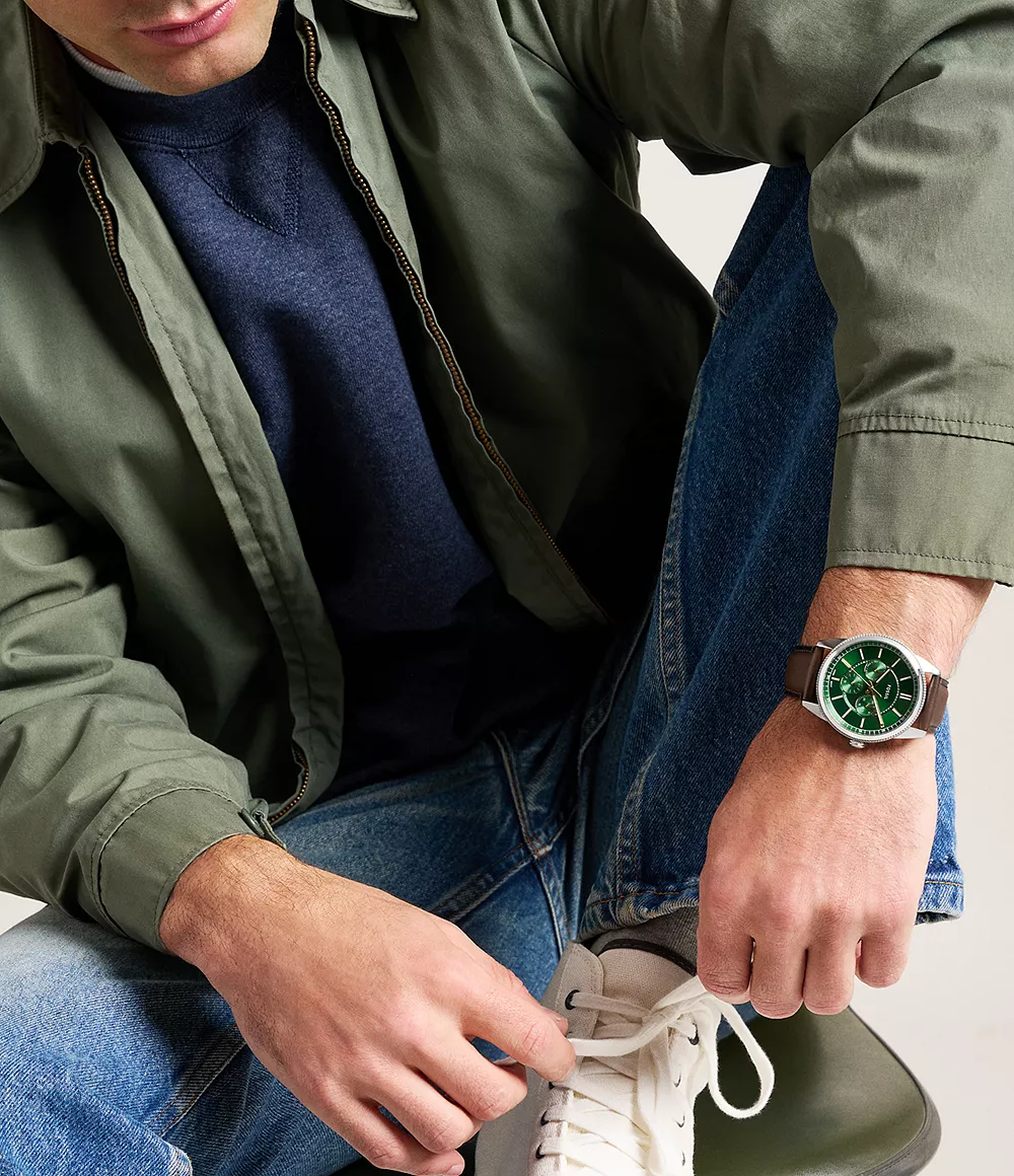 Una caja en tono acero inoxidable enmarca una esfera verde con efecto «rayos de sol», que crea una sutil textura y profundidad. La esfera verde presenta un acabado de CD que le aporta mayor profundidad, junto con prácticas subesferas para el día, la fecha y la función de 24 horas. Junto con una correa de piel de gran calidad en color marrón, combina comodidad cotidiana y artesanía refinada. Una cuidada selección de materiales y un diseño equilibrado hacen de este reloj un refinado complemento para tu colección de accesorios